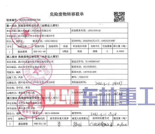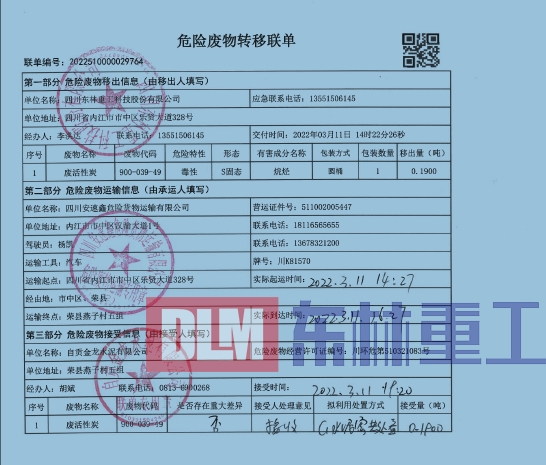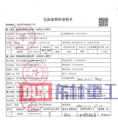 2022年3月危險廢物污染治理信息公示